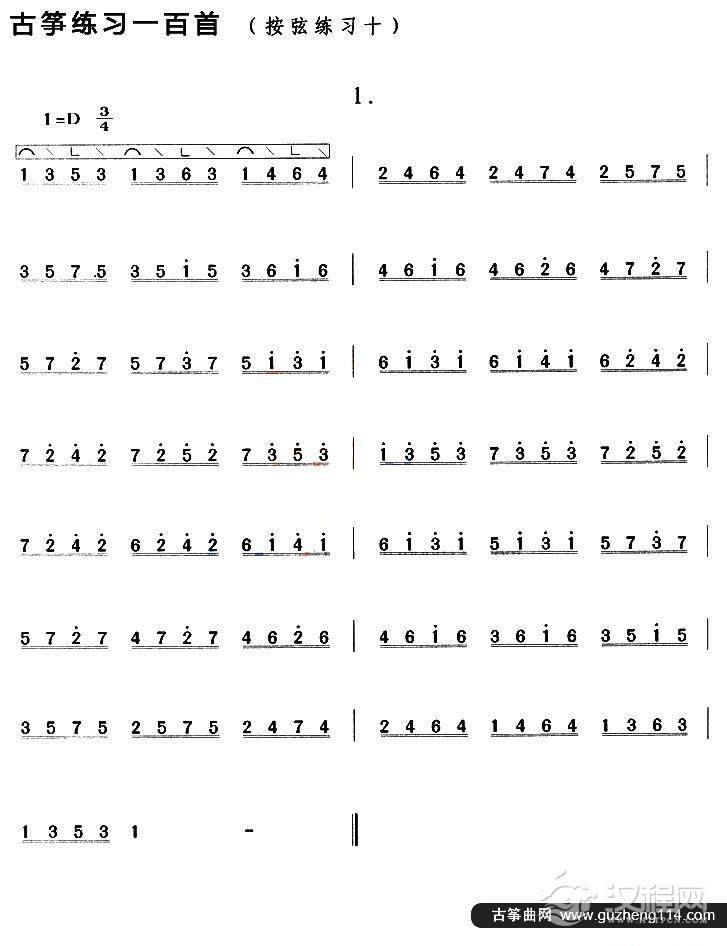 曲谱大全古筝按弦练习(九)