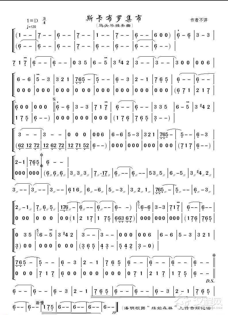 曲谱大全马头琴独奏曲谱《牧歌》
