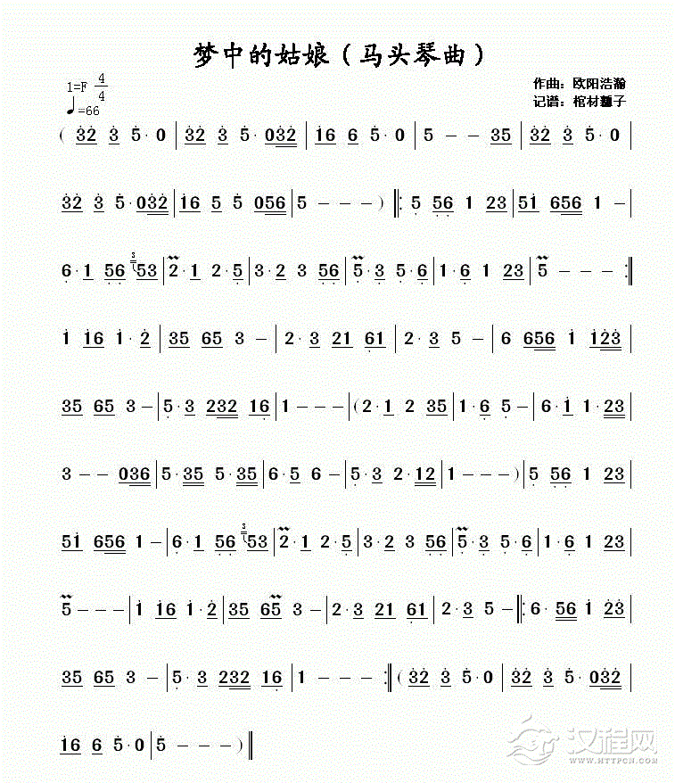 曲谱大全马头琴独奏曲谱《梦中的额吉》