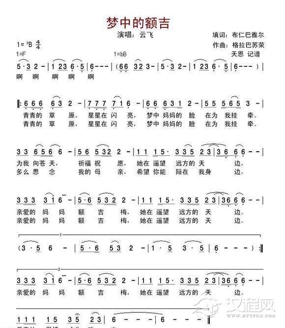 曲谱大全马头琴独奏曲谱《梦中的姑娘》