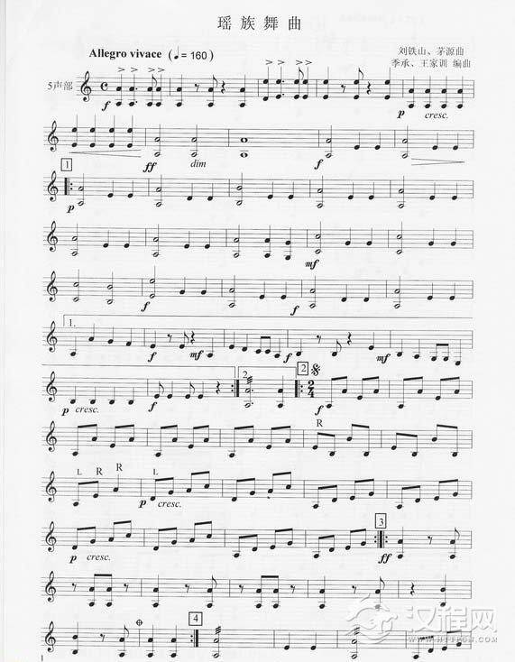 曲谱大全马林巴琴乐谱《瑶族舞曲 第二声部》