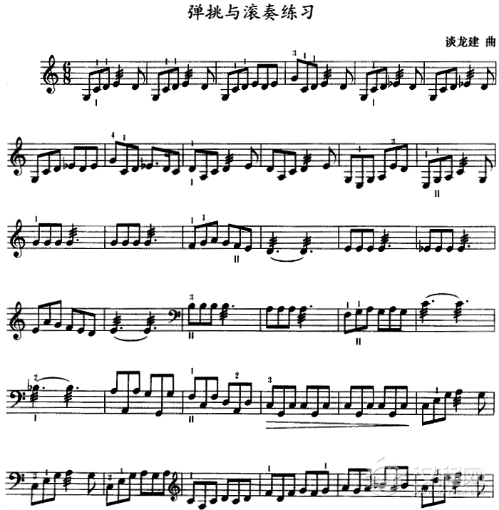 曲谱大全三弦谱《三弦弹挑与滚奏练习曲》简谱