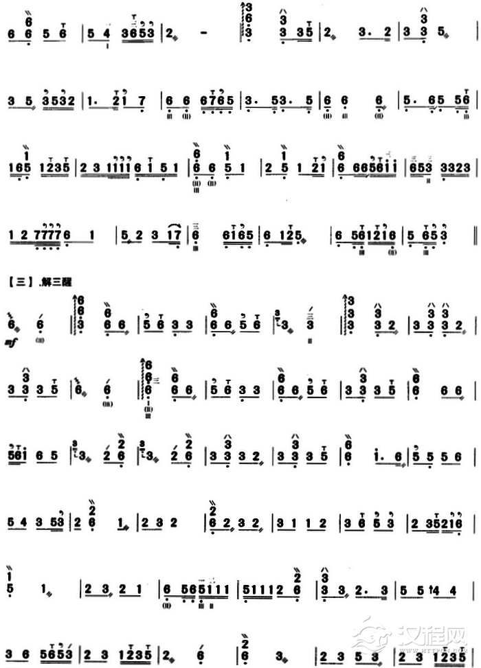 曲谱大全三弦谱《松青夜游》简谱