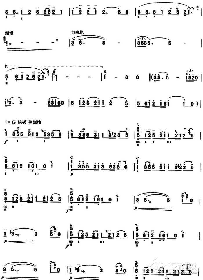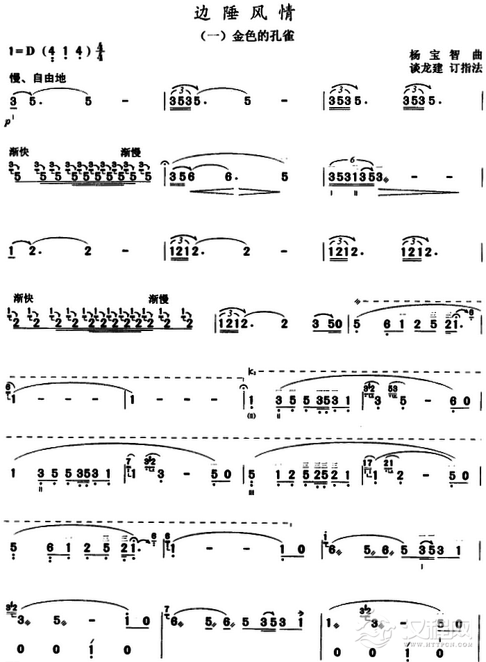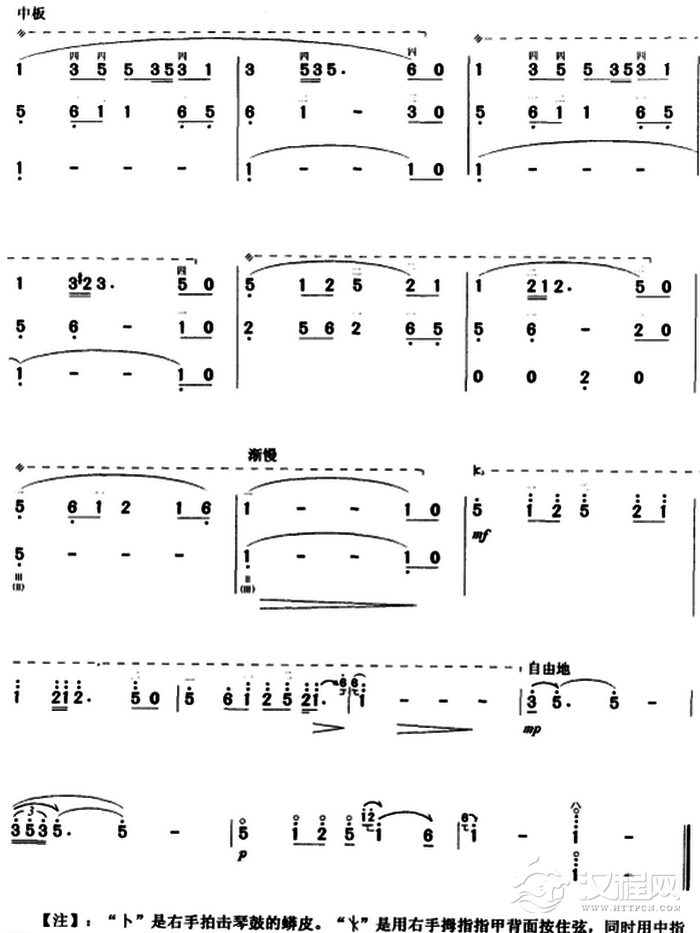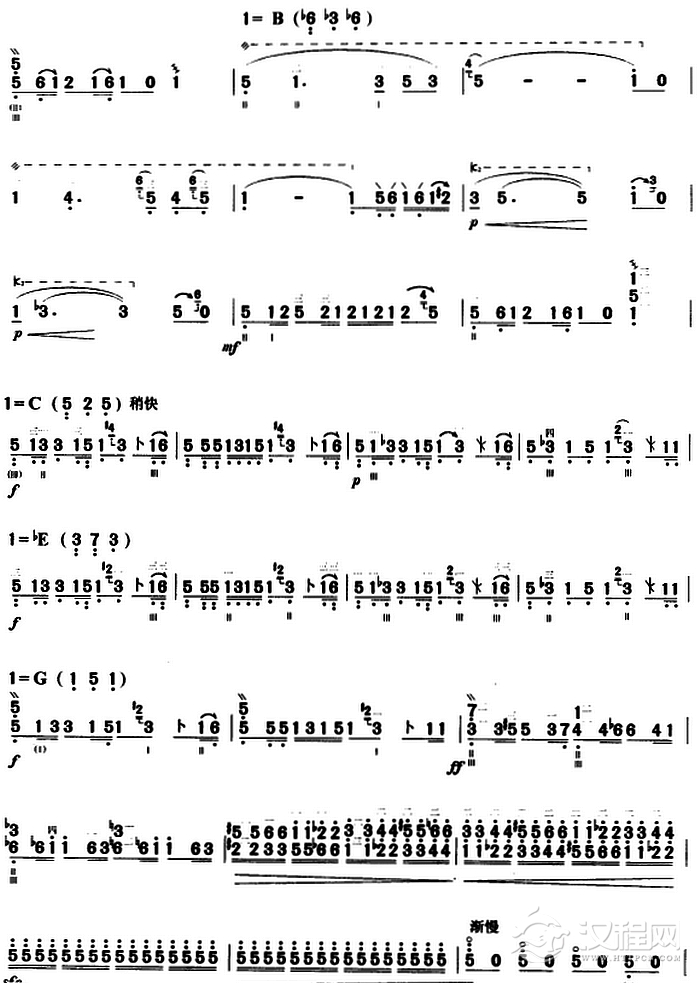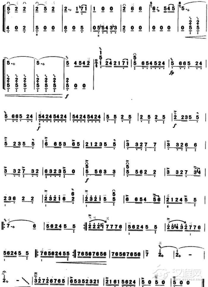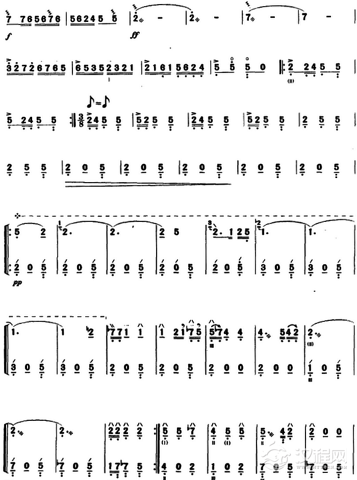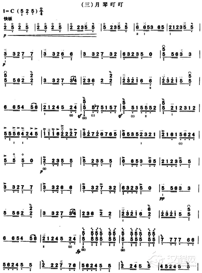 曲谱大全三弦谱子《彩云追月》柳琴与笛子主旋合成谱