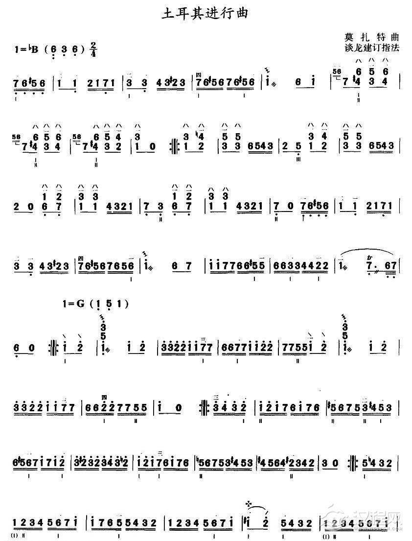 曲谱大全三弦谱《土耳其进行曲》五线谱