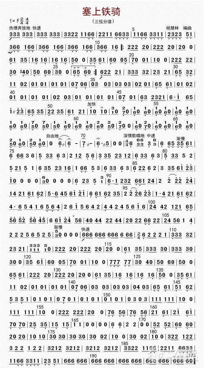 曲谱大全三弦分谱《山乡春早》