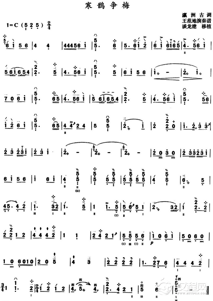 曲谱大全三弦谱《寒鹊争梅》五线谱