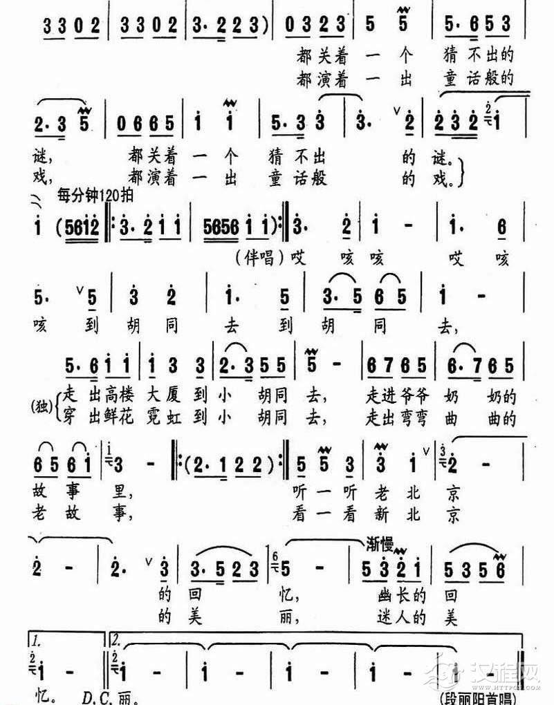 曲谱大全京胡谱《北京胡同》程安国词 胡绍正曲