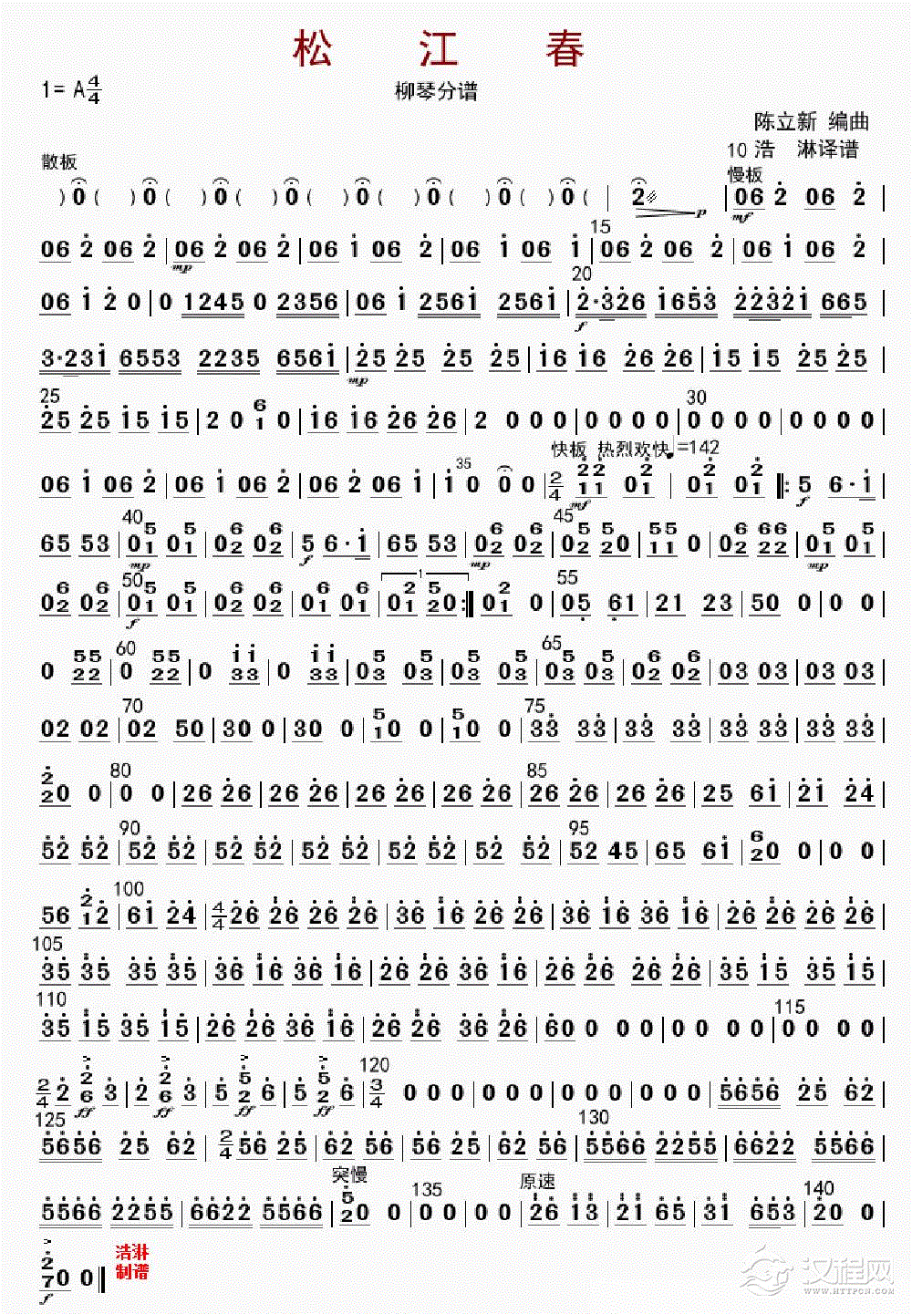曲谱大全柳琴谱《珠江月》琵琶 柳琴分谱