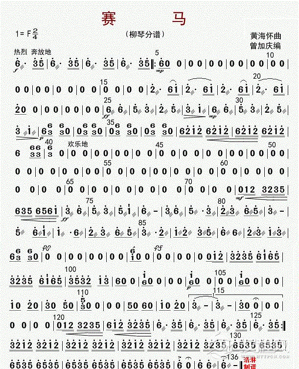 曲谱大全柳琴谱《塞上铁骑》柳琴分谱
