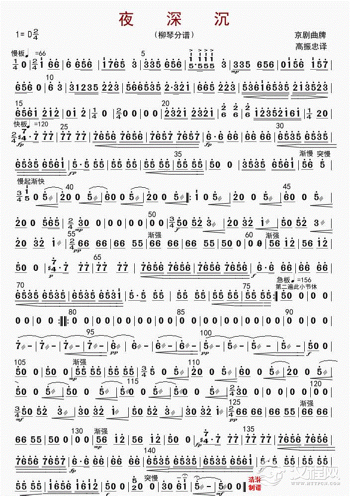 曲谱大全柳琴谱《珠江月》琵琶 柳琴分谱