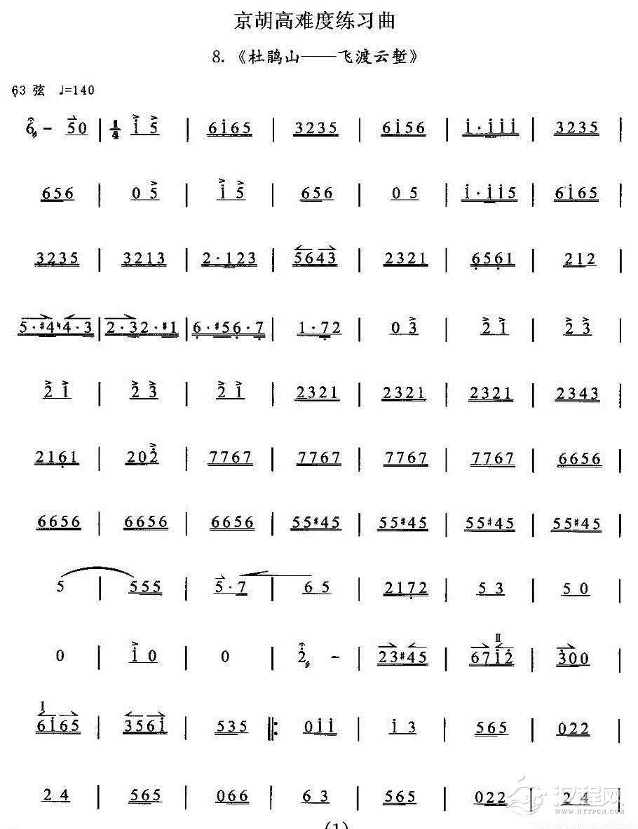 曲谱大全京胡高难度练习曲谱《杜鹃山 青竹吐翠》