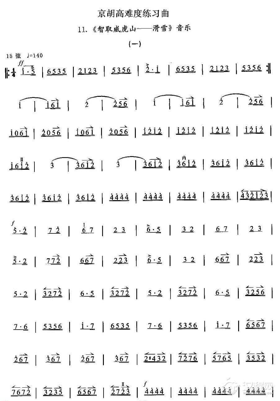 曲谱大全京胡高难度练习曲谱《智取威虎山 打虎上山》前奏