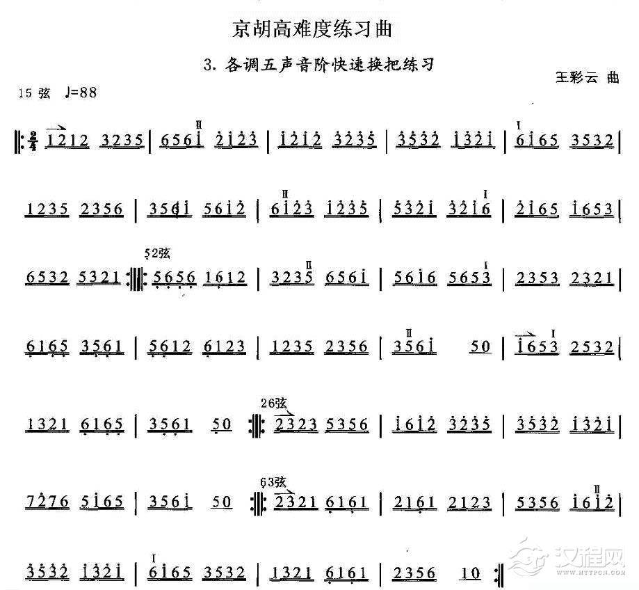 曲谱大全京胡高难度练习曲谱《上把位指距练习》