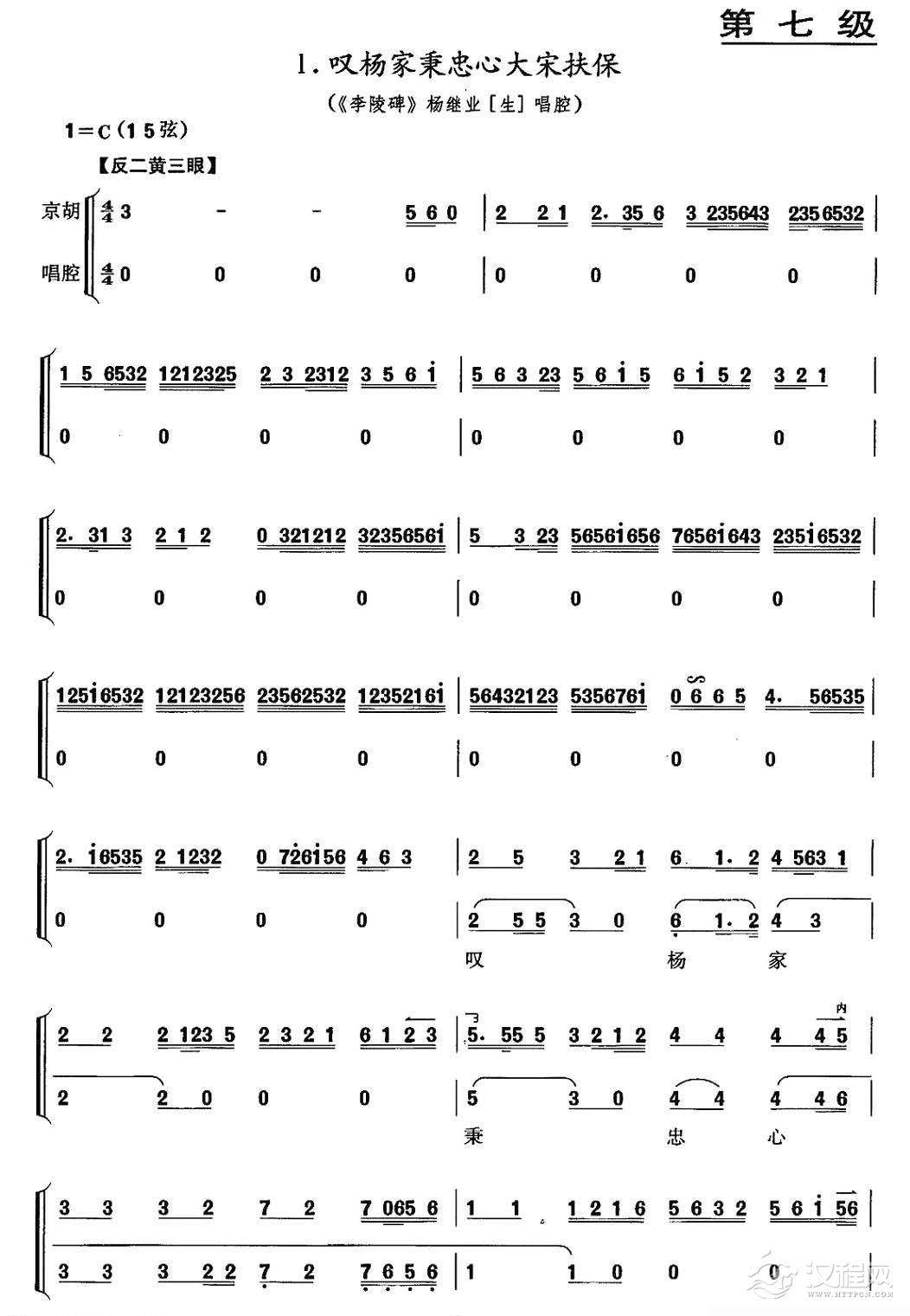 曲谱大全京胡考级谱 每日里在宫中逍遥饮酒《白门楼》吕布唱段