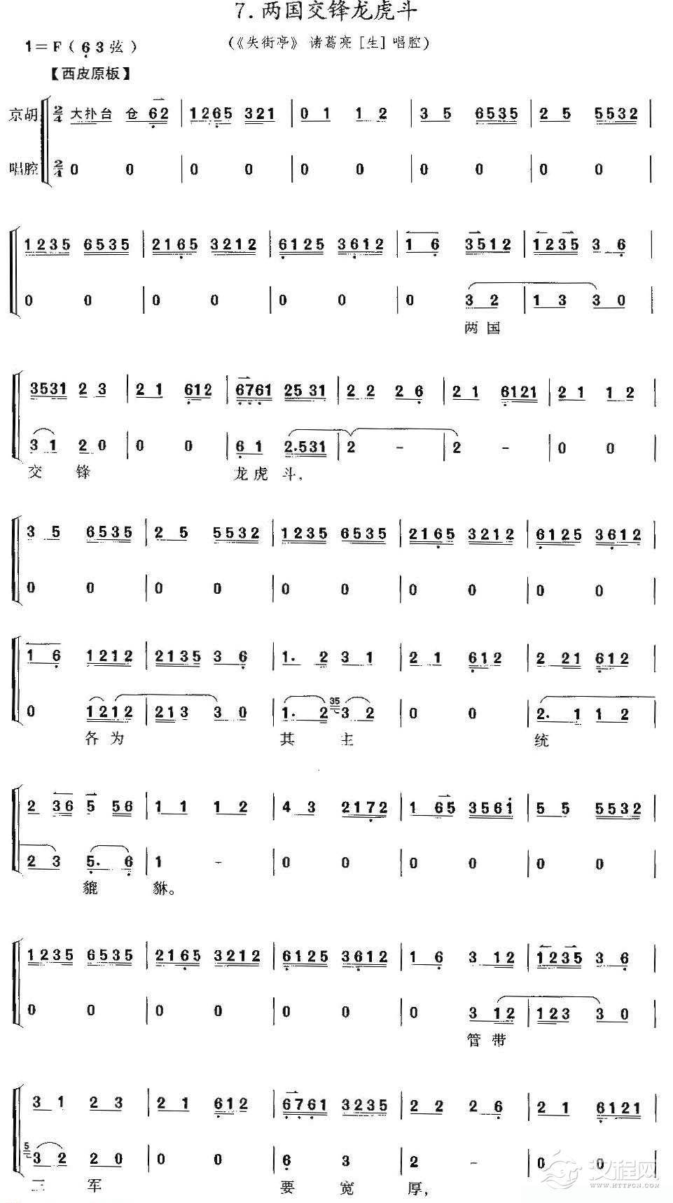 曲谱大全京胡考级谱 劝千岁杀字休出口《龙凤呈祥》乔玄唱段