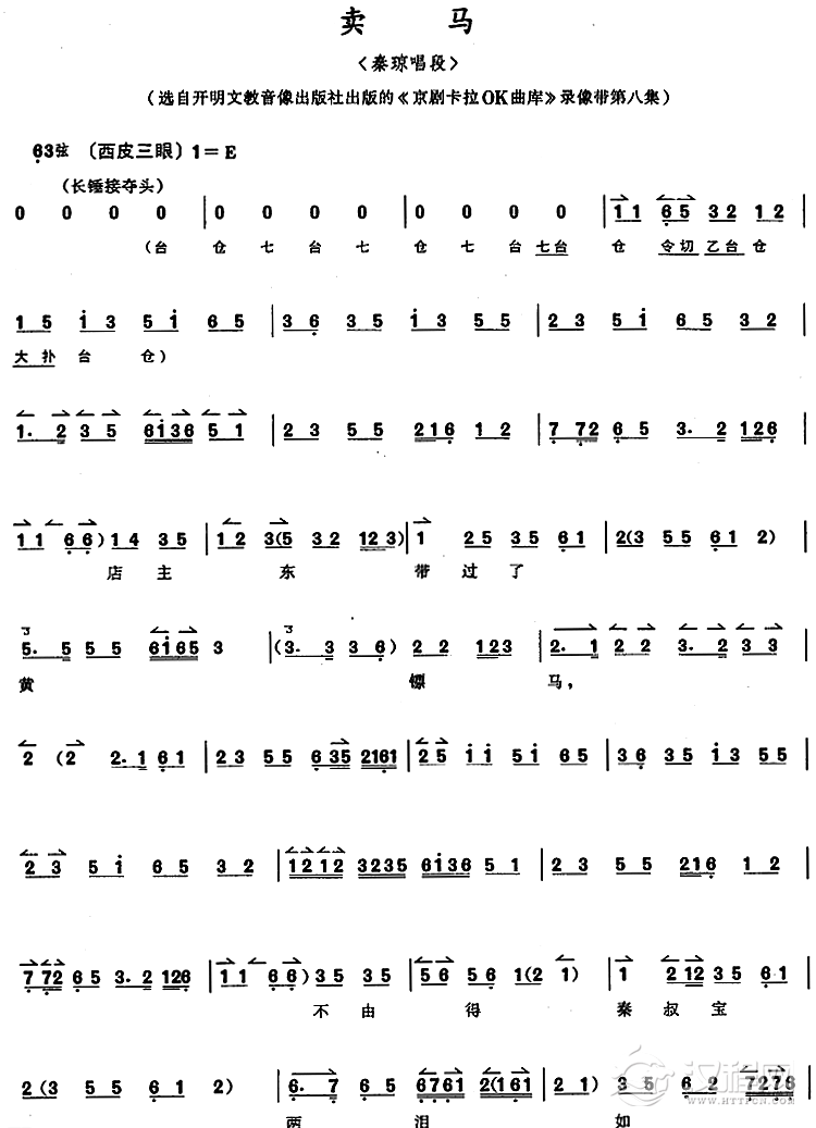 曲谱大全京胡乐谱《卖水》