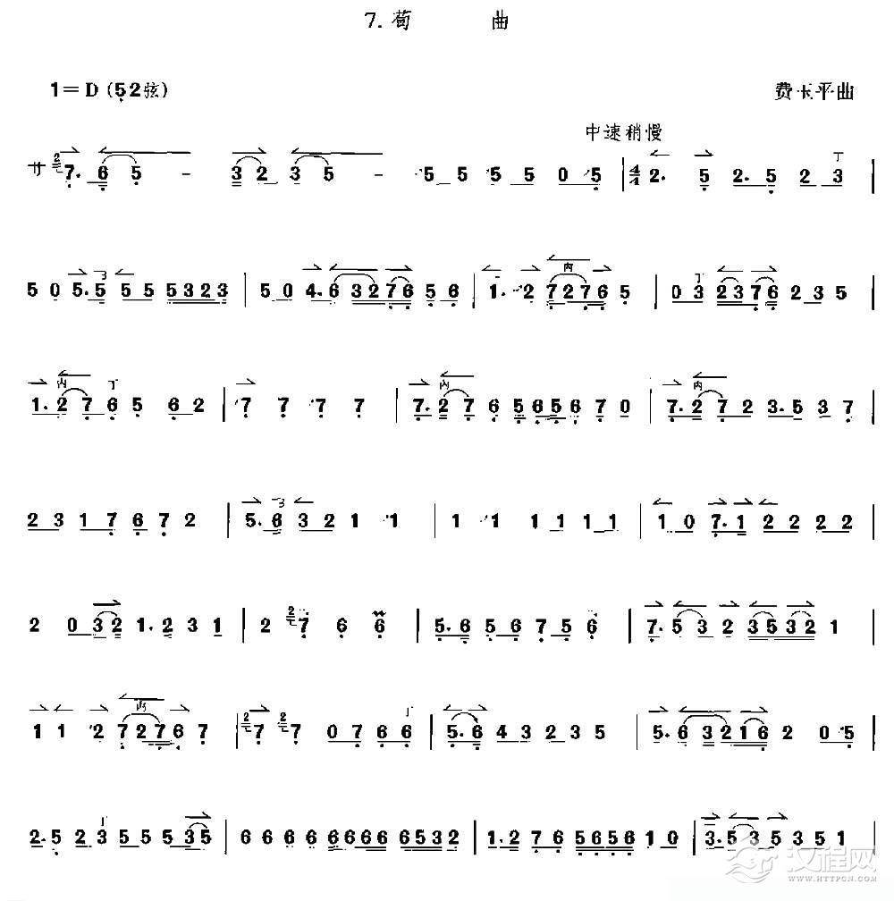 曲谱大全京胡乐谱《荀曲》京胡练习曲