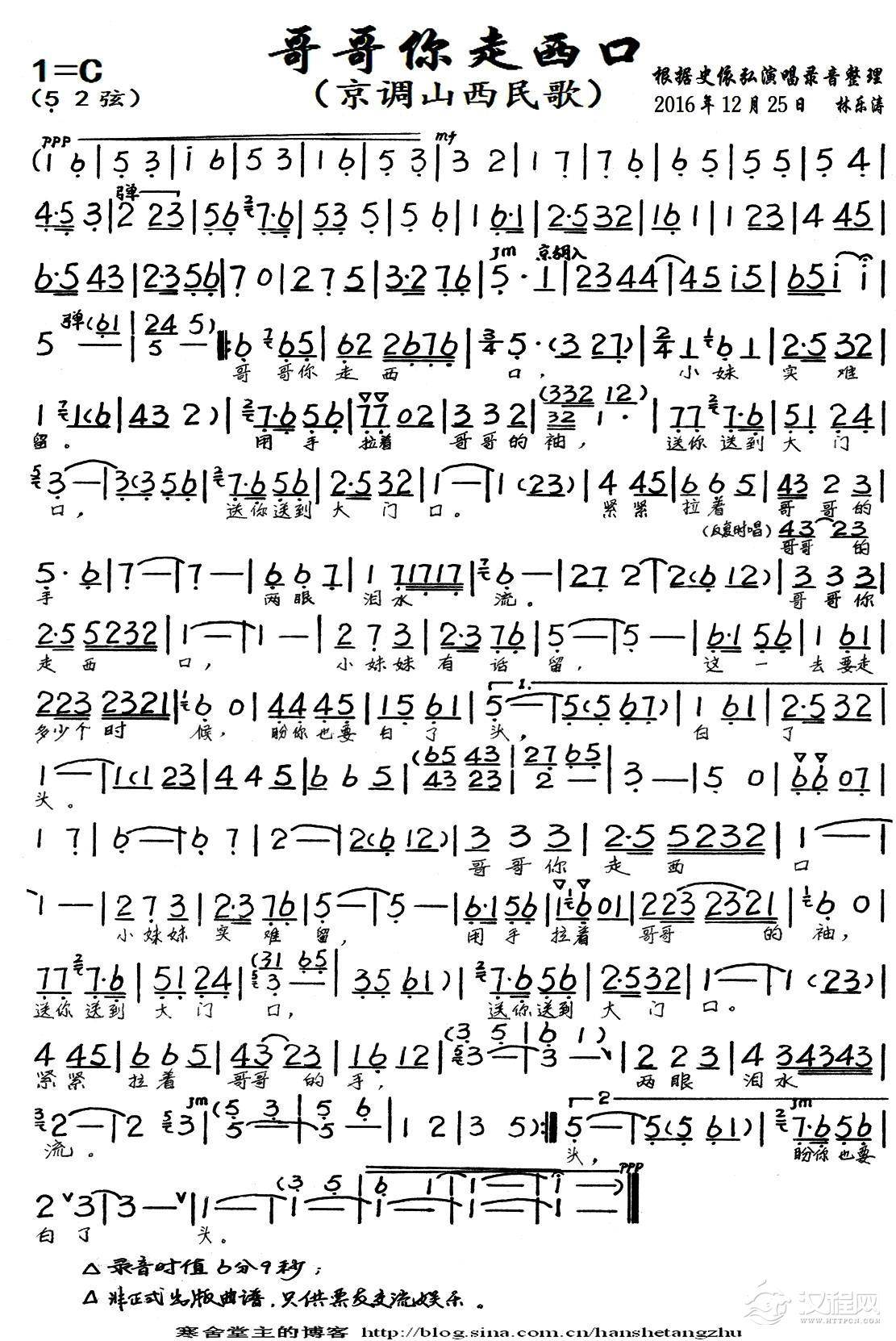 戏曲曲谱梁兄送我出学堂