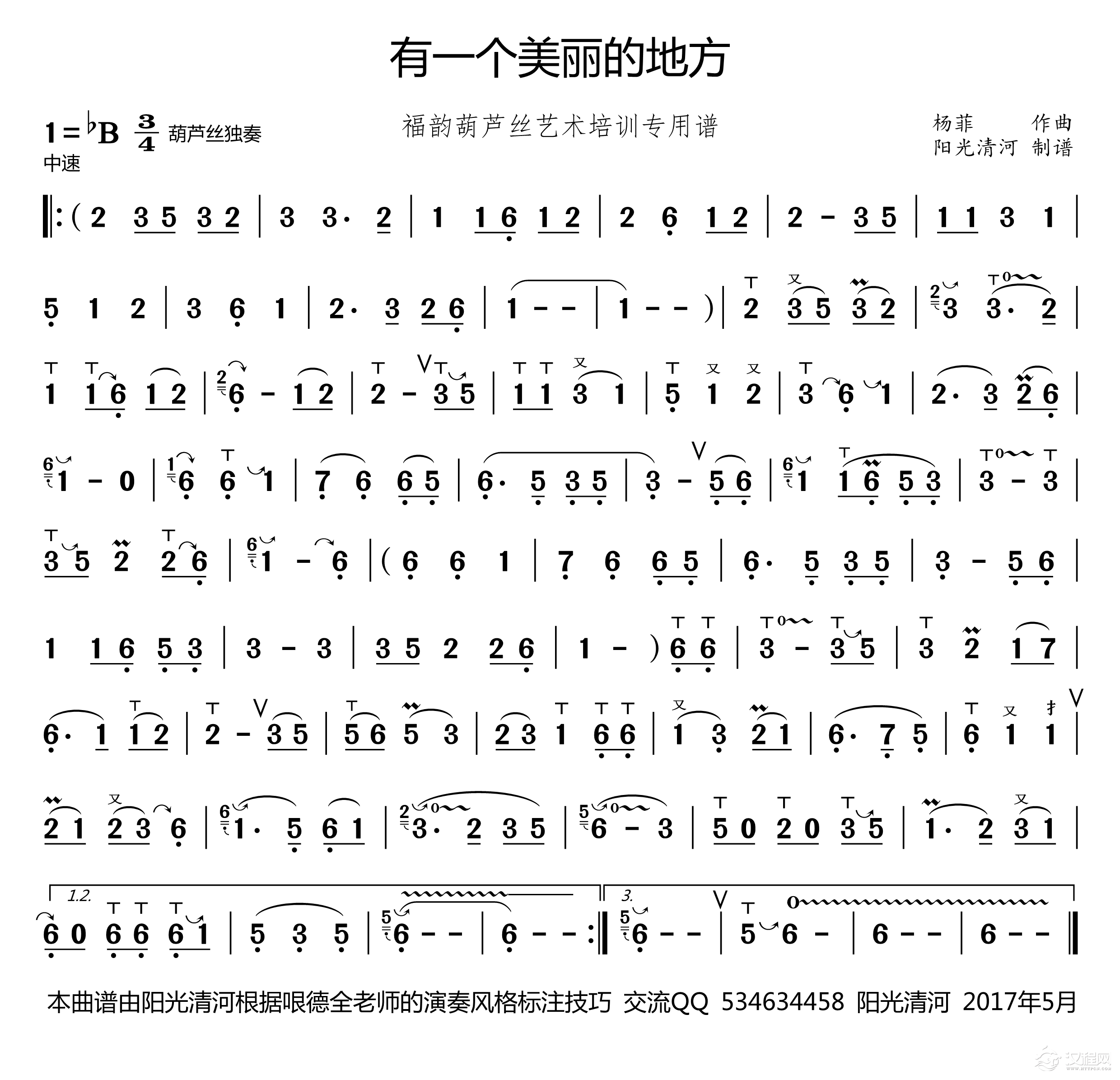 曲谱大全月光下的凤尾竹(葫芦丝技巧谱)