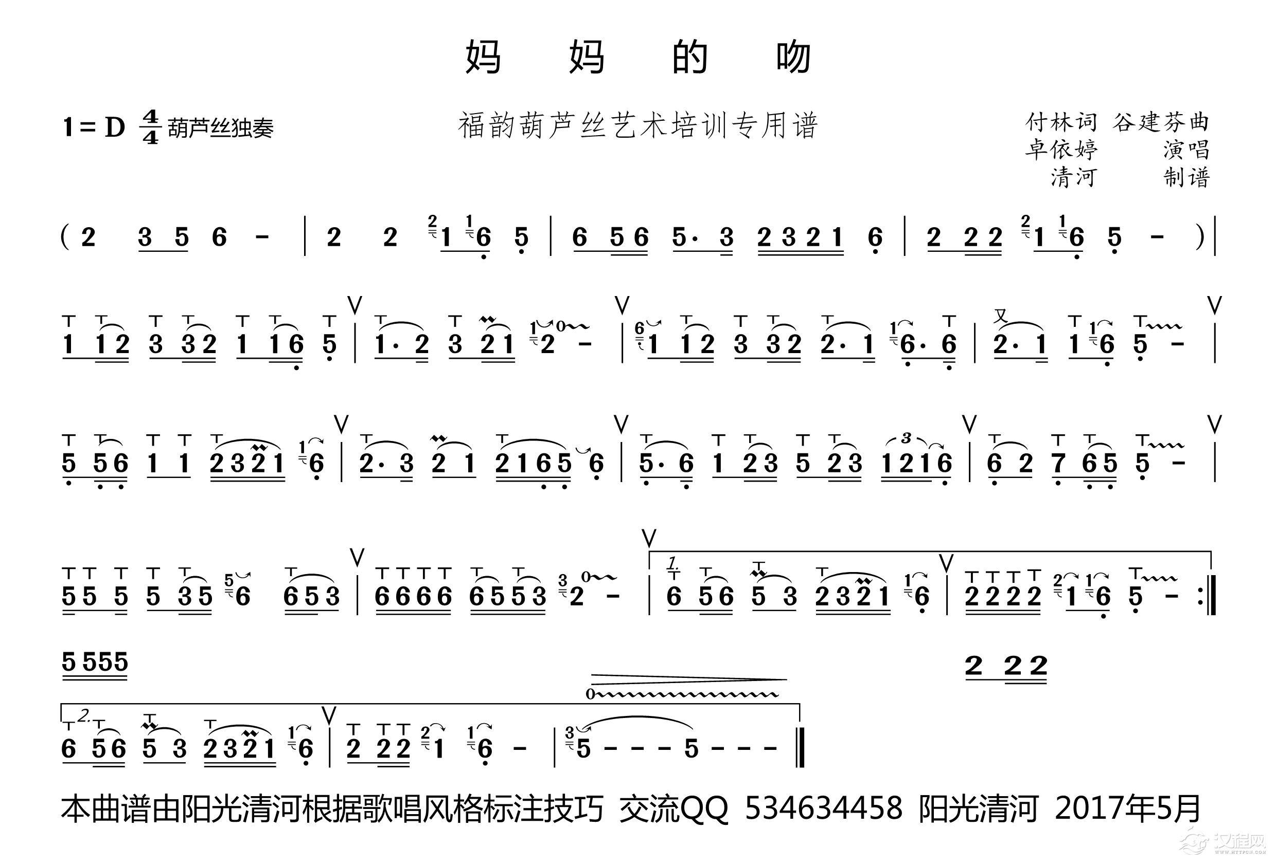 曲谱大全月光下的凤尾竹(葫芦丝技巧谱)