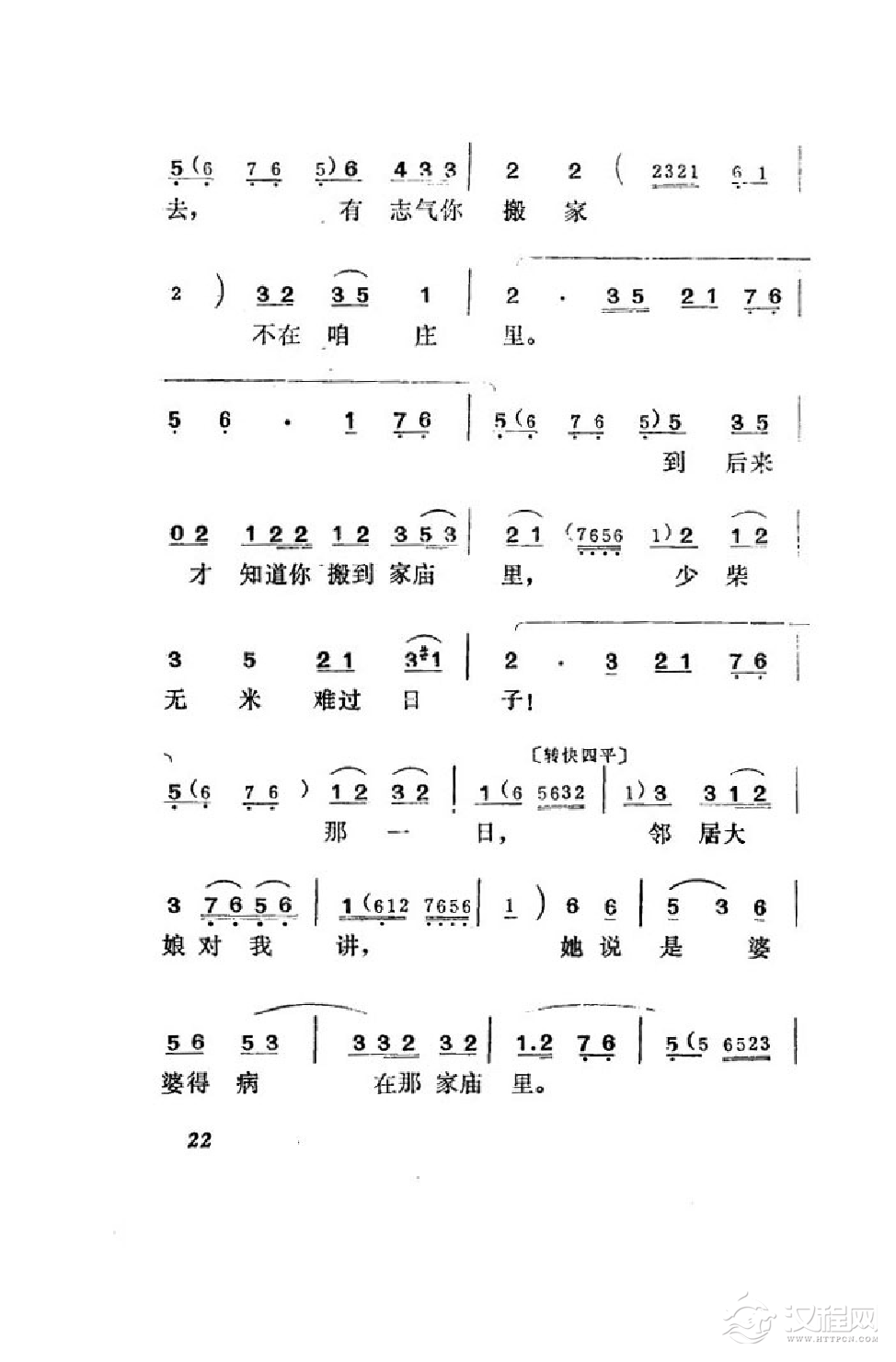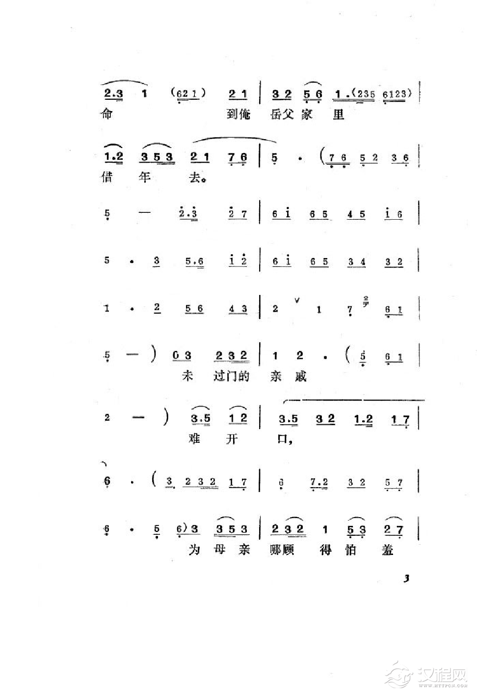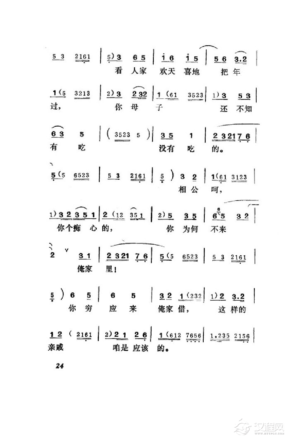 戏曲曲谱春秋配受逼迫去捡柴