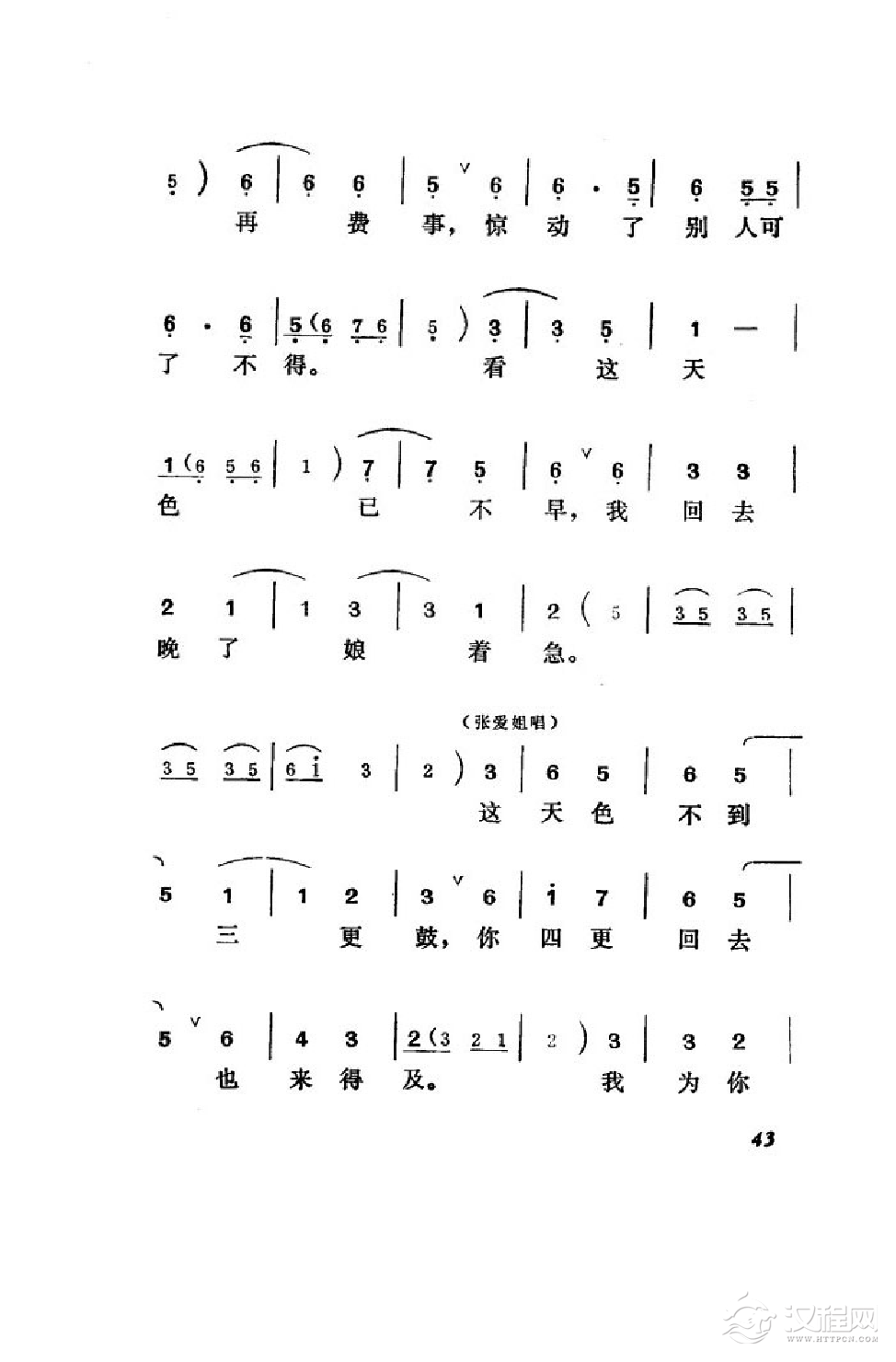 戏曲曲谱怕三更,三更到(黄梅戏神话艺术片《龙女》云花唱段)
