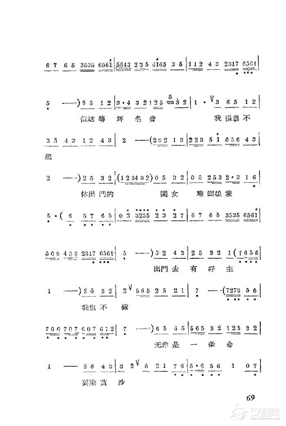 戏曲曲谱春秋配受逼迫去捡柴