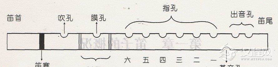 音孔 (按指孔)共有六个,分别开闭这些音孔,就能发出高低不同的音。