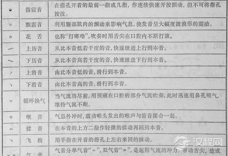 乐器学习笛子指法表图片