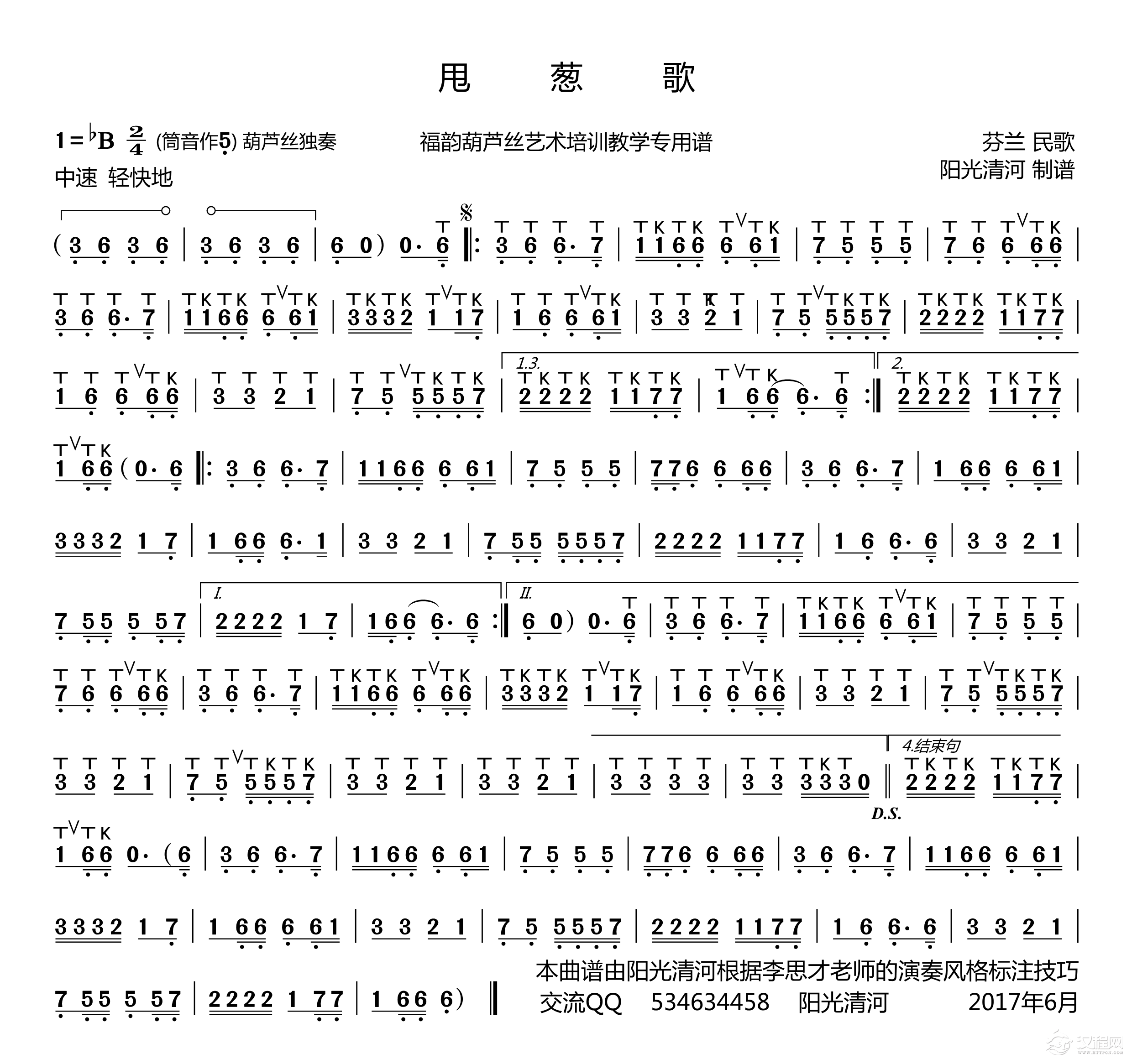 曲谱大全甩葱歌(葫芦丝谱)