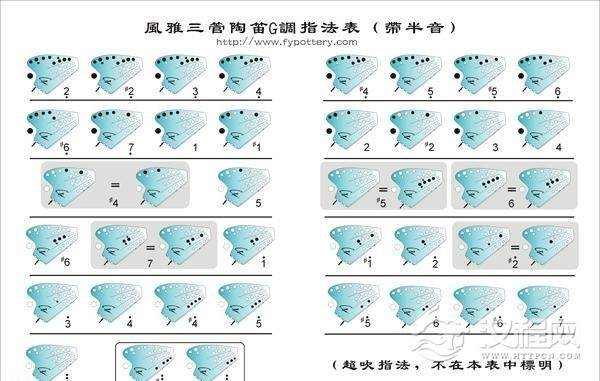 乐器学习三管陶笛F调指法表
