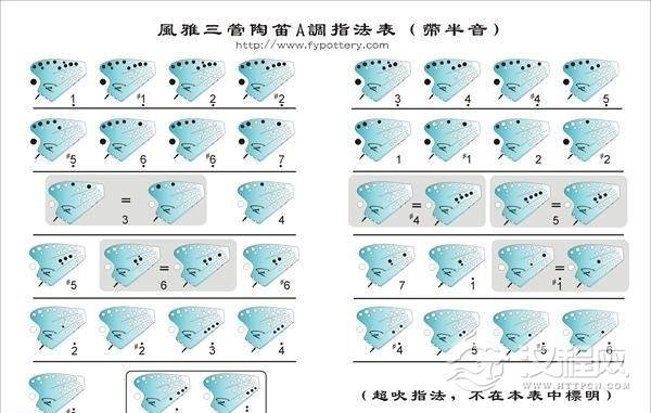 乐器学习三管陶笛F调指法表