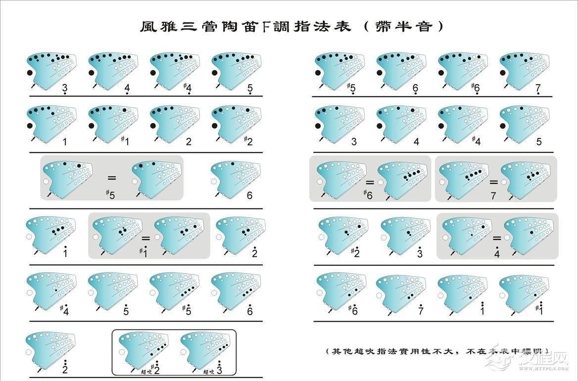 乐器学习三管AC陶笛指法表图解