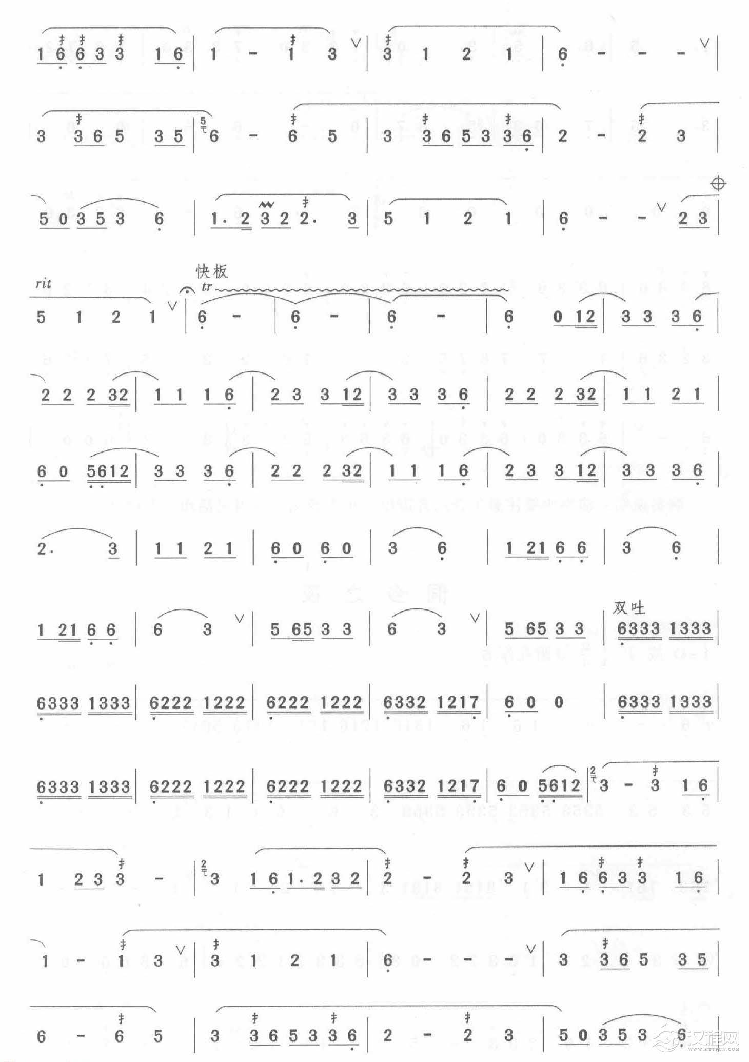 曲谱大全初级笛箫乐曲《老六板》简单的竹笛曲