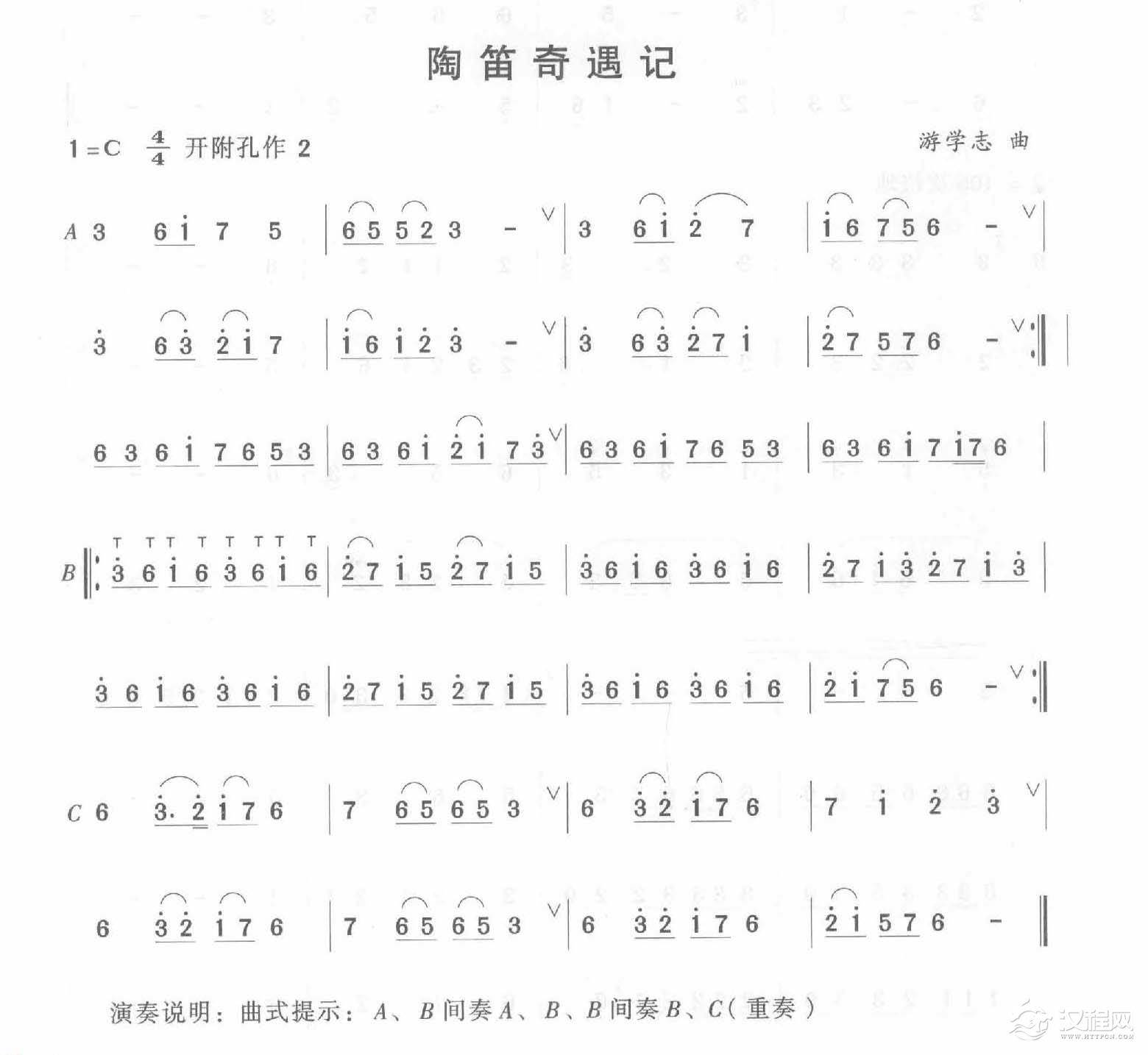 曲谱大全陶笛移植乐曲谱《京调》