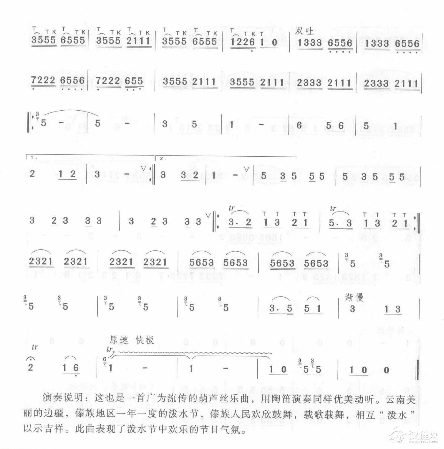 曲谱大全陶笛移植乐曲谱《竹楼情歌》