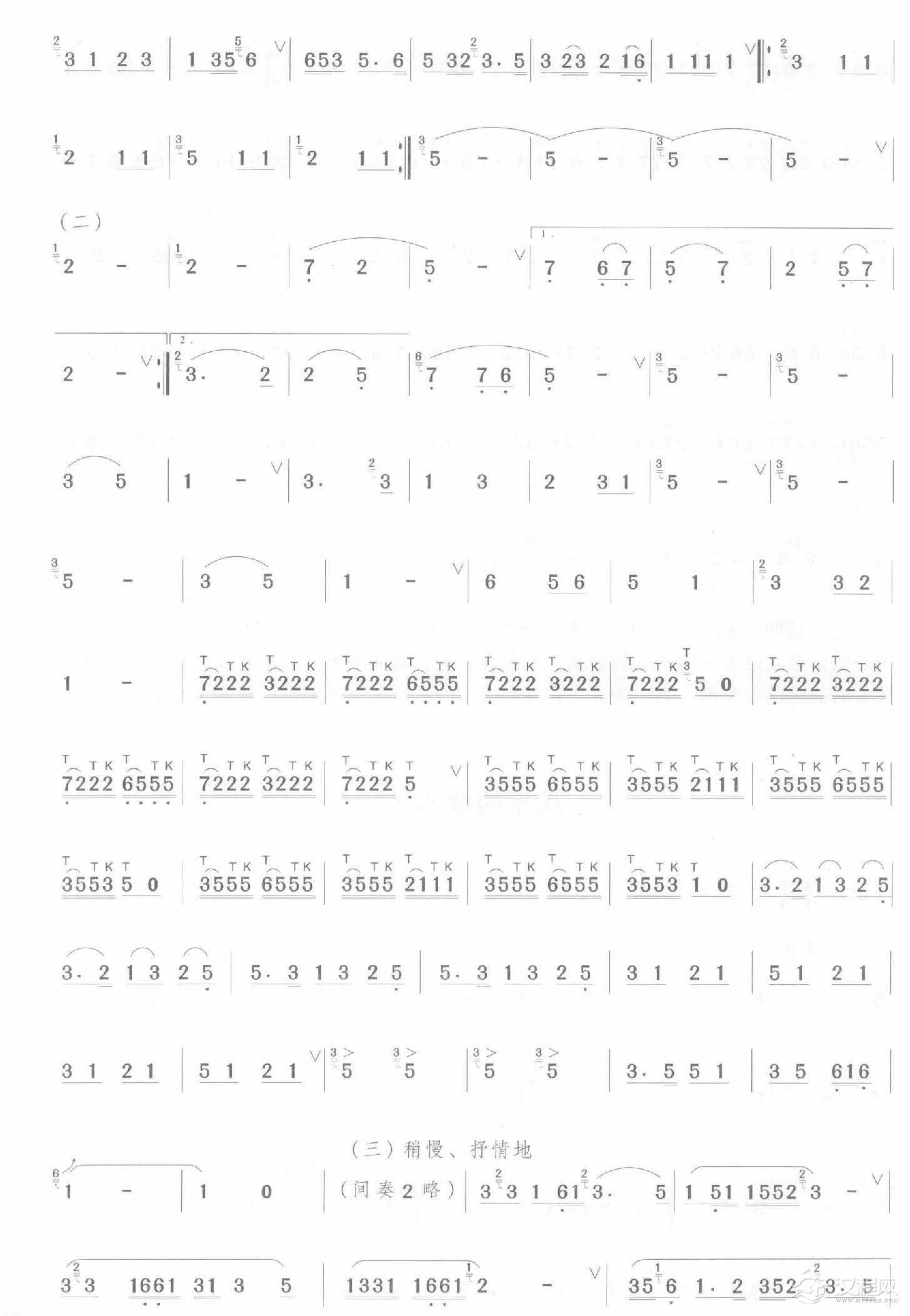 曲谱大全初级笛箫乐曲《月牙五更调》简单的竹笛曲