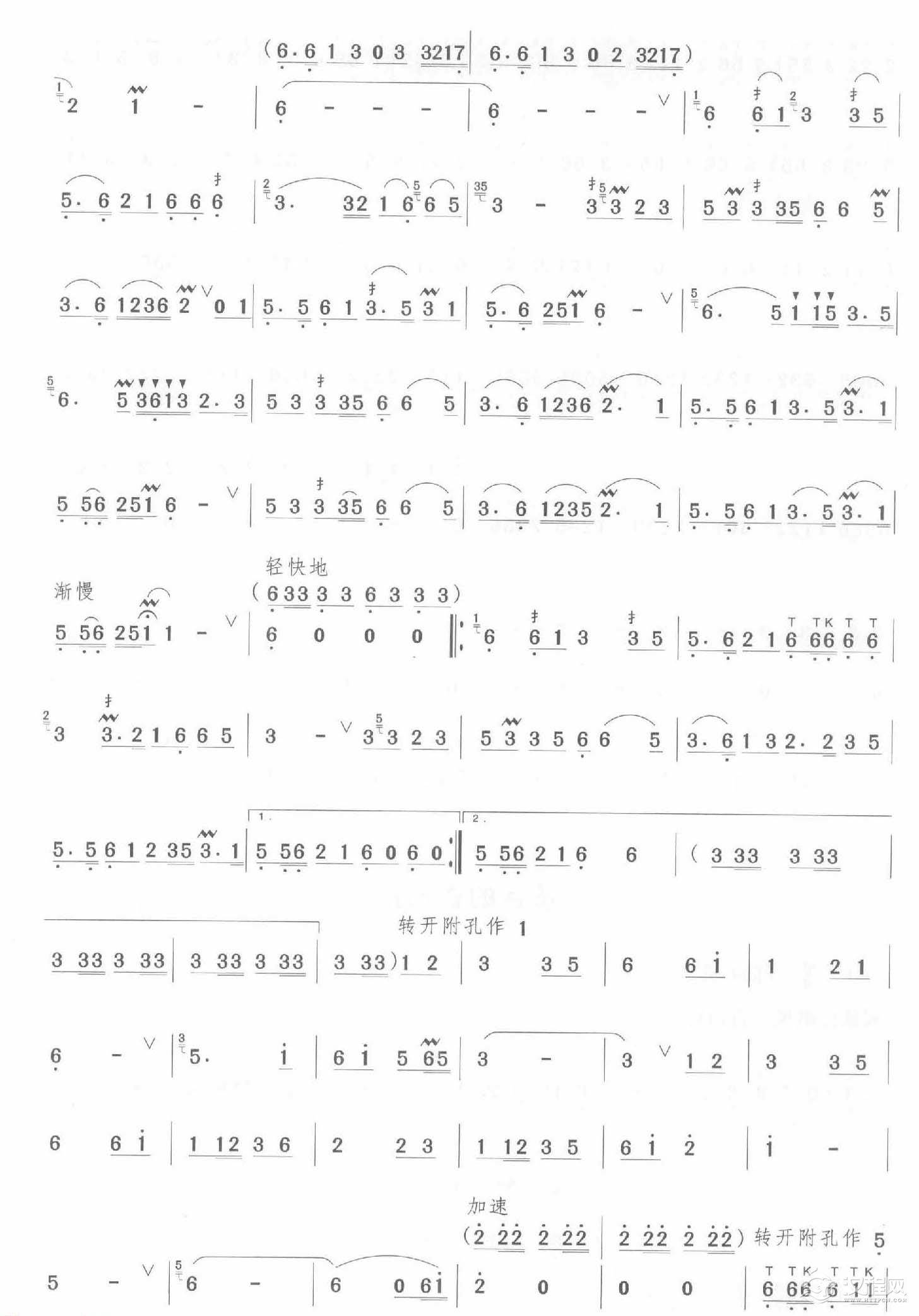 曲谱大全初级笛箫乐曲《跑马溜溜的山上》简单的竹笛曲