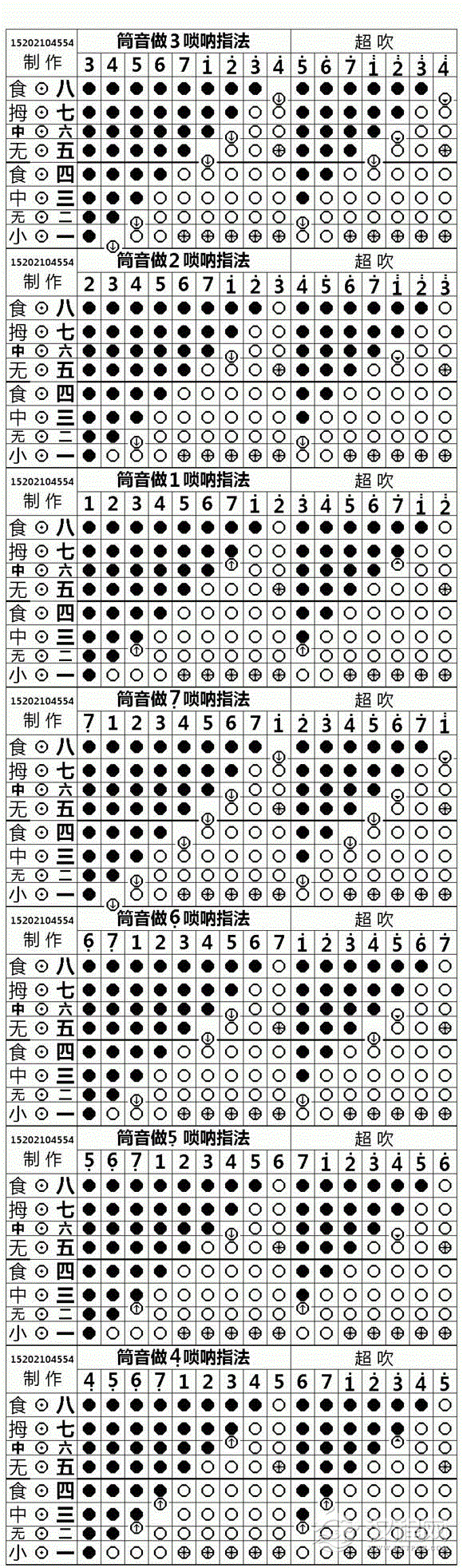 唢呐筒音做3/2/1/7/6/5/4的指法图示|超吹