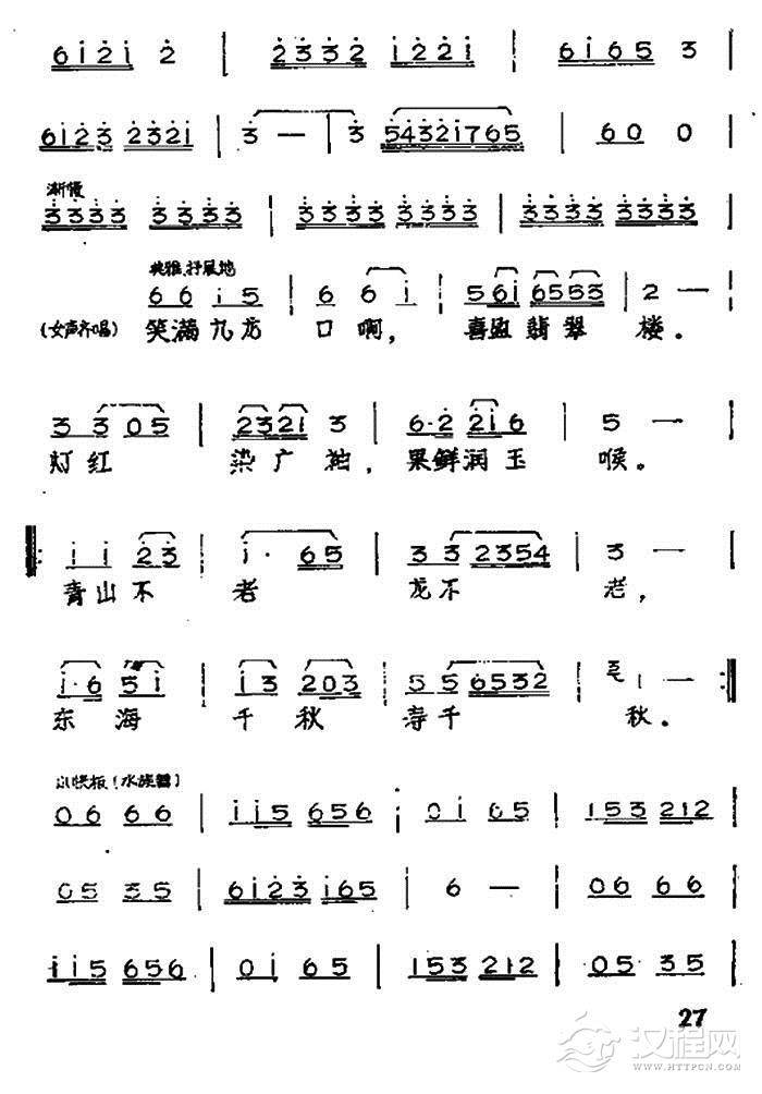 戏曲曲谱及时雨堪称颂(黄梅戏神话艺术片《龙女》姜文玉云花唱段)