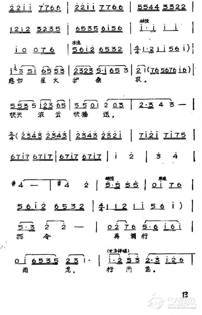 戏曲曲谱及时雨堪称颂(黄梅戏神话艺术片《龙女》姜文玉云花唱段)