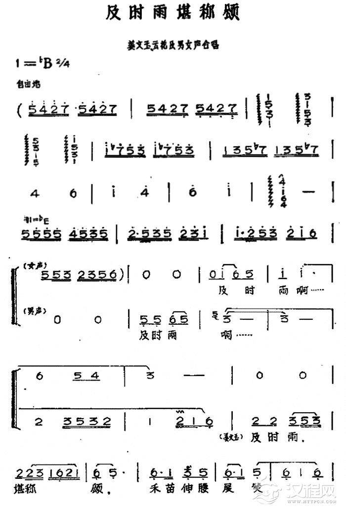 戏曲曲谱天旱苗枯瘦(黄梅戏神话艺术片《龙女》男女声合唱)
