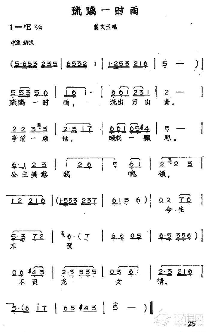 戏曲曲谱雨丝儿已诉龙女情(黄梅戏神话艺术片《龙女》云花姜文玉唱段)