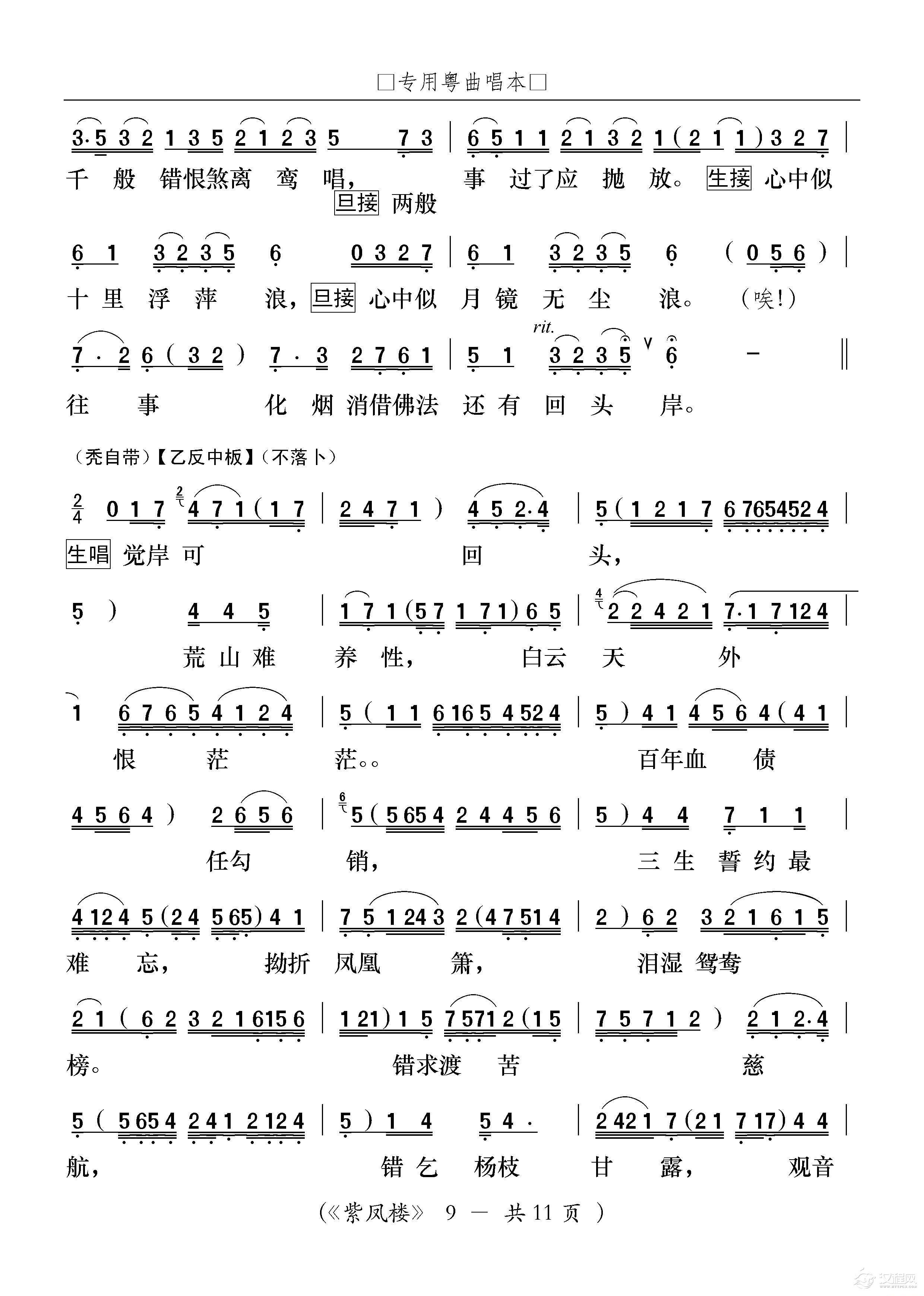 戏曲曲谱凌空驾云乘长风(黄梅戏神话艺术片《龙女》云花唱段及伴唱)