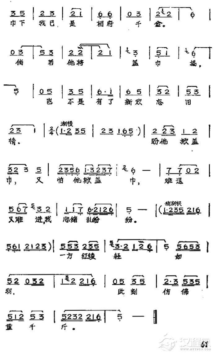 戏曲曲谱晚风习习秋月冷(黄梅戏神话艺术片《龙女》姜文玉唱段)