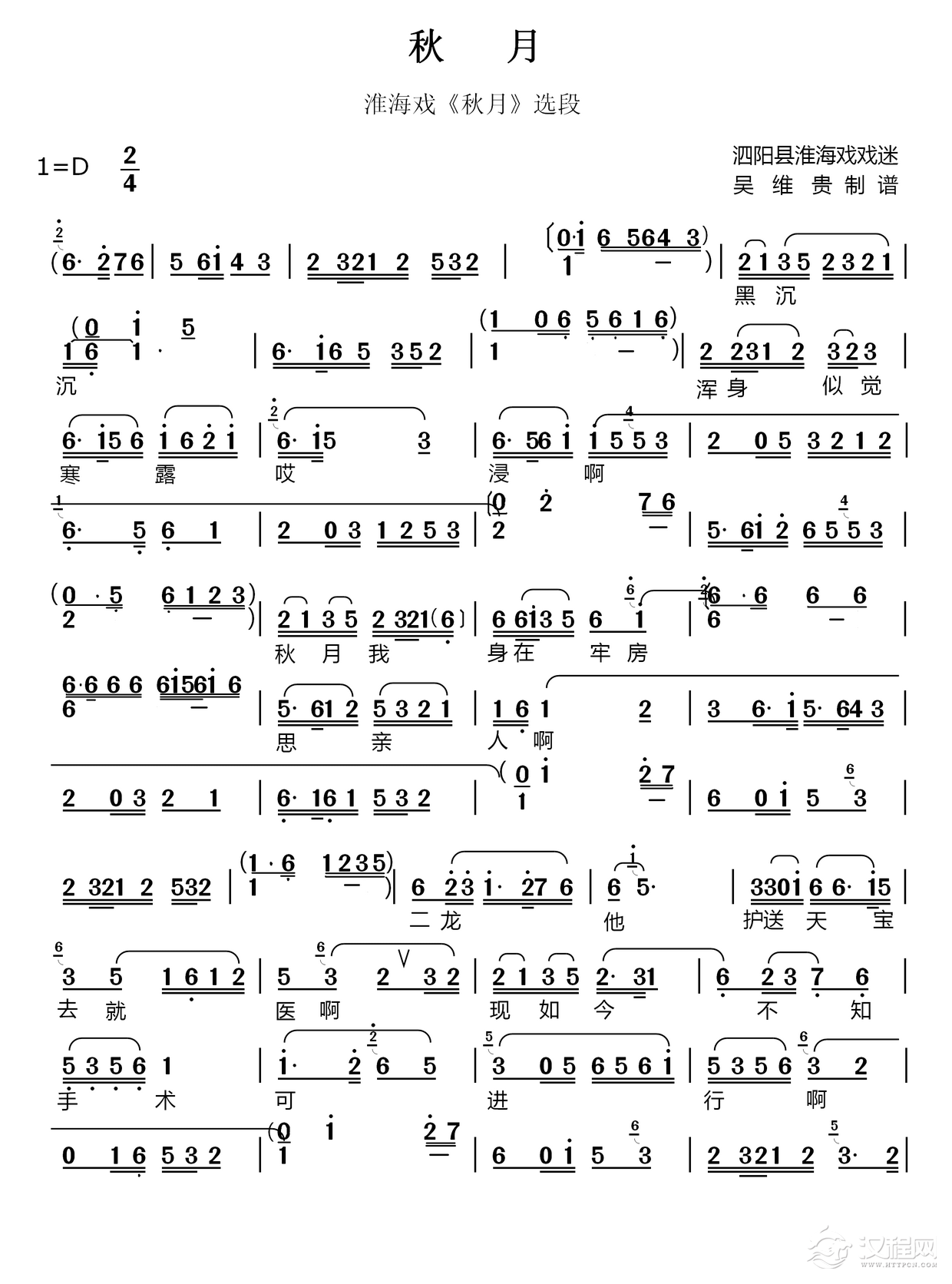 戏曲曲谱一月思念(黄梅戏神话艺术片《龙女》珍姑唱段)