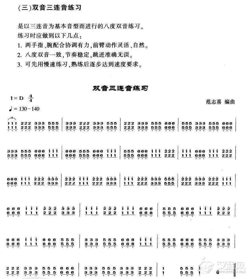 曲谱大全《扬琴不同节奏的双音练习》中级阶段