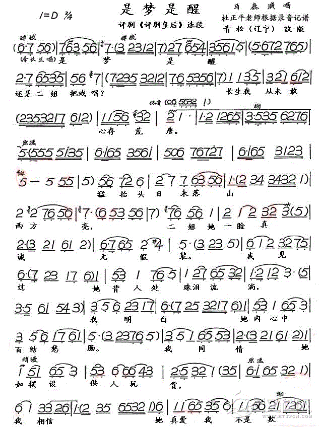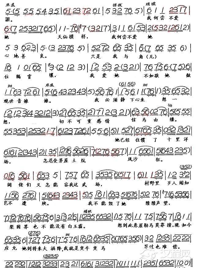 戏曲曲谱莫再守(黄梅戏《榴花不开盼哥回》选段)
