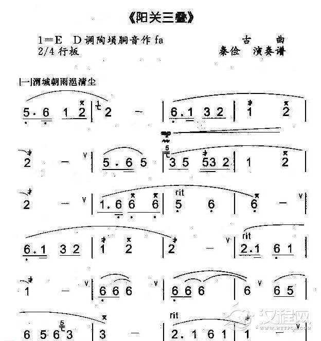 曲谱大全埙独奏乐曲谱【阳关三叠】
